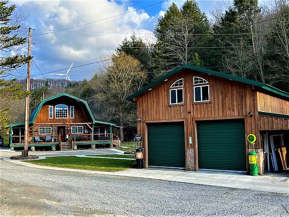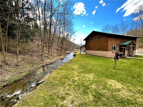 Whitetail Properties is pleased to present this immaculate four-bedroom log home with a streamside yard nestled into the quiet and scenic hills of Cohocton, NY. The open feel and 19-foot-tall ceiling adds volume to this already large country living home. Upon approach, you will be greeted by an 8' x 40' covered porch to the front entrance with log and ironworks railings to compliment the country feel when you want to come home to relax. Open the front door and you a greeted with the warmth and cozy decor only a log home can bring. The interior is constructed with the perfect blend of log, tongue, and groove pine and accent walls of drywall with huge 30 pane windows in the peaks providing beautiful rays of natural light throughout the entire house. The flow from the dining room to the kitchen and great room is natural and convenient to keep all members of the home present. A log-railed staircase leads up to the 31' x 19' loft, all tongue and groove pine accented, and cozy for more family living space. Even the loft has a 10' ceiling keeping the open theme consistent on the upper level. The kitchen has custom cabinets and features a five-burner gas range and stove, a stainless steel fridge a bonus beverage fridge, with a serve-over bar. The rear of the home is host to all four bedrooms, an office, a workout room, and a galley flex space perfect for doing homework, extra office space, or organization. The master bedroom has a full walk-in closet, with the laundry room and master bathroom in this suite of rooms. A walk-out door also leads from the master suite to a private deck in the backyard. On the south side of the home overlooking the stream is a screened porch with a gas fireplace where the homeowners often find themselves enjoying a morning coffee, a summer iced tea, or meals together outside listening to the song of the stream tumbling through the river rocks. A hot tub is also present here for relaxing and having conversations like you are in a mountain resort. The West side of the home has a large mudroom, perfect for pets and discharging muddy boots and winter coats before you come inside. Connected to this is a 26 x 22 carport for your vehicles to keep free from rain and snow. Across the yard is a newer constructed three-door 24 x 30 garage with a 10 x 30 carport. This garage is well suited for large vehicles and is also perfect for a shop, extra recreational vehicles, or finishing the upstairs into another space for entertaining or storage. With so many features and pride of ownership, this log home and country property is a rare find. Check this one out its priced well to sell!... Welcome home.