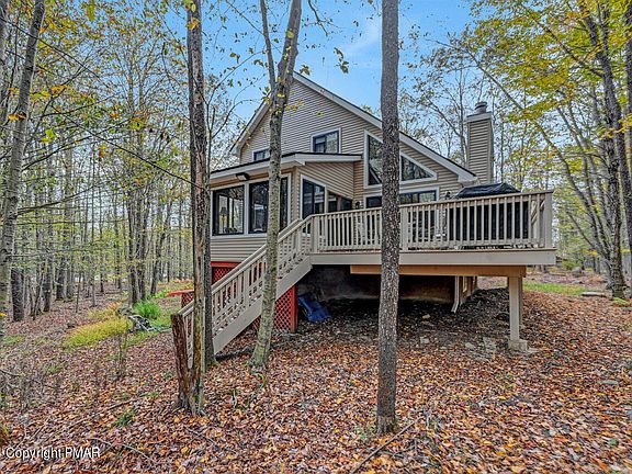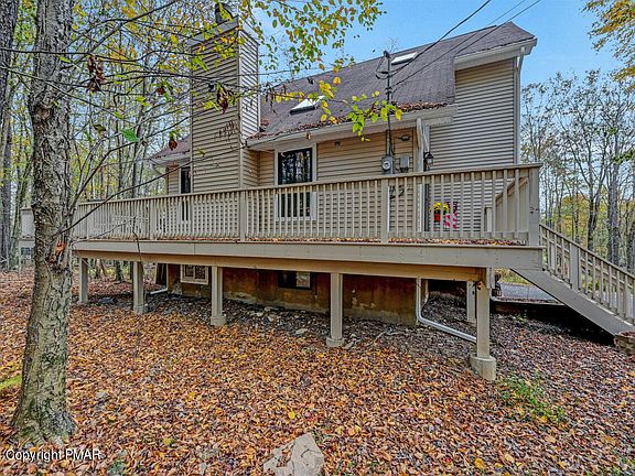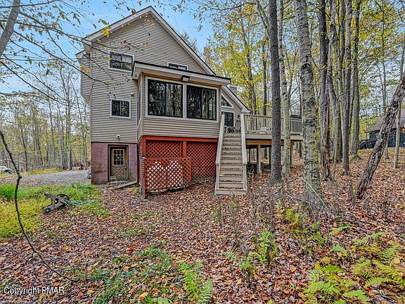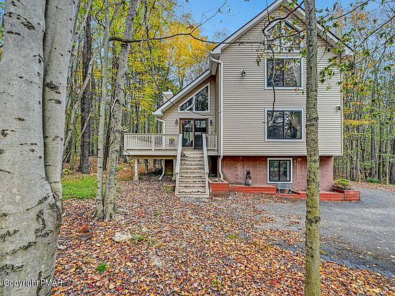 *HIGHEST & BEST BY MONDAY 10/21 @ NOON* This Chalet-style retreat is located in Big Bass Lake, in the Pocono Mountains on a culdesac, offering the perfect blend of comfort & style. Experience the warm ambiance of natural wood finishes and vaulted ceilings, lots of windows letting in the natural light! The spacious open floor plan has plenty of room for family and guests w/3 bdrms & 3 bths, as well as a finished lower level recreation room . There is a 4 season room directly off the updated kitchen with all new stainless steel appliances. The spacious deck just outside the sunroom, is a great space for BBQ's and entertaining. The attached one car garage can be used to store your outdoor toys if not the car. Come see this great home before it's gone, make it your private outdoor oasis!
