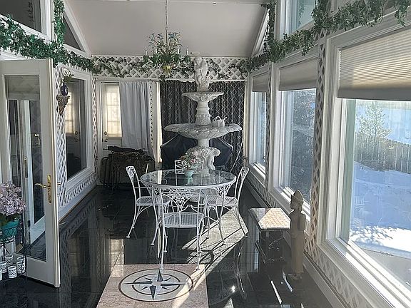 Sunrooms & Decks: Two separate sunrooms plus elevated decks provide serene spots for relaxing, sunbathing, or entertaining against a dramatic mountain backdrop.