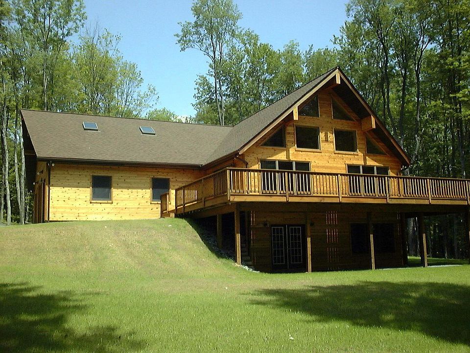 Beautifully wooded lot with approximately 75 ft of brook frontage surrounding this 3 bedroom,3 bath cedar contemporary home with extra large wraparound porch with 2 car garage. Huge great room with kitchen and views of brook.Whirlpool, ceramic tile baths., Beds Description: 2+Bed1st, Baths: 1 Bath Level 1, Baths: 1 Bath Level 2