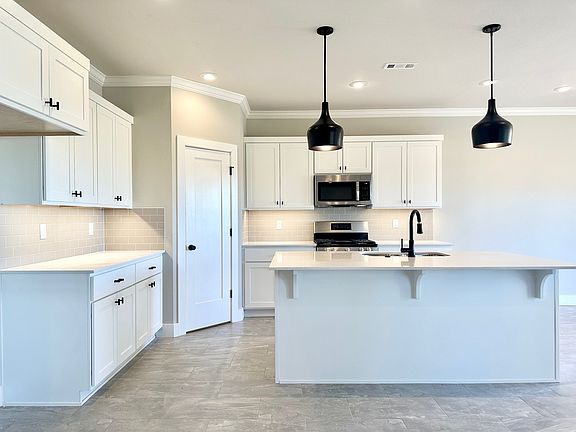 With its open concept and functional design, the single-level Daffodil is a home you can't wait to get back to. Once you step inside, you'll find a guest bedroom conveniently located off the entryway. Opposite of this is a hallway that creates a private retreat for guests by leading to two additional bedrooms and a full bathroom with a double vanity. The entryway then opens into a spacious living room that glows with natural light from the wall of windows that also offer a view of the backyard and covered back patio. Connected to the living room is the kitchen, complete with an oversized island and walk-in pantry, and a dining room that is perfect for all of your family meals and entertaining. Next, make your way into the private owner's suite where you'll discover a tray ceiling and a spacious bathroom with a double vanity, soaker tub, and walk-in shower. The large walk-in closet just off the bathroom provides easy access to the laundry room with built-in cubbies to give you even more storage space.