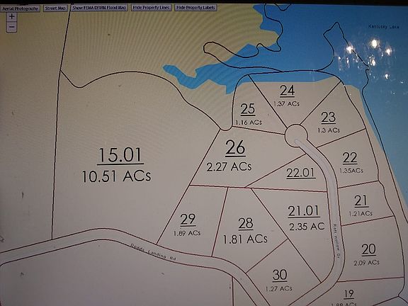 10.51 acres with 439' of road frontage, mature trees and Kentucky lake access. Several great lake views. Only 2 miles away to TWRA boat ramp. Land is Eligible to File for boat slip permit with TVA. Electric already in place on road. Option 2 buy 5 acres for $90,000 with buyer paying for survey, etc.