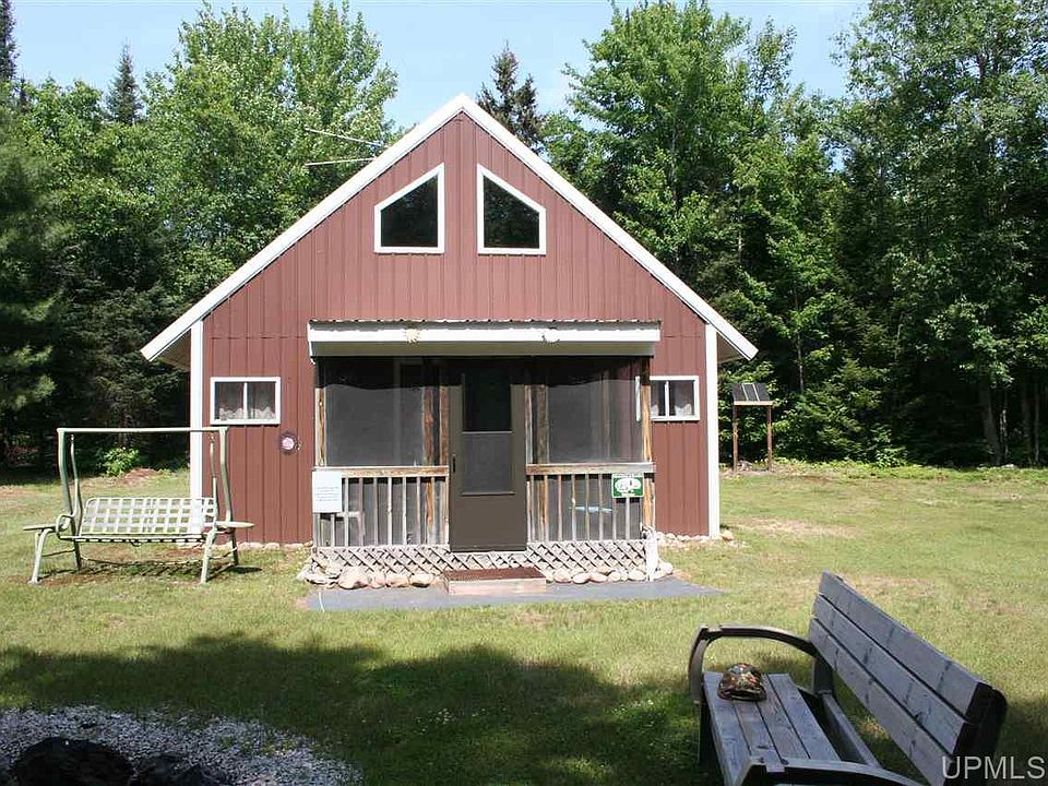 ATV-HUNTING-SNOWMOBILING OR JUST RELAXING- This is your place to get away in the U.P. 20 ACRES of nicely wooded property very close to year round access. 24x24 insulated cabin with 12x24 loft for sleeping which fits a couple of beds. Propane space heat along with a free standing wood stove. Solar electricity and generator for back up with easy turnover switches inside cabin. LED lights. Point well allows for water inside. Relax in the screened in front porch. Interior of cabin finished in 2017. Outside you will have all you need with a 16x16 garage built with Skandia trusses +12x12 shed, fire pit, light poles so you can enjoy evening horseshoes, elevated deer blind. Be one with nature! Deer, partridge, turkey, rabbit. Furnishings negotiable. Champion Generator 4 cycle 4000 wat & propane tanks included.