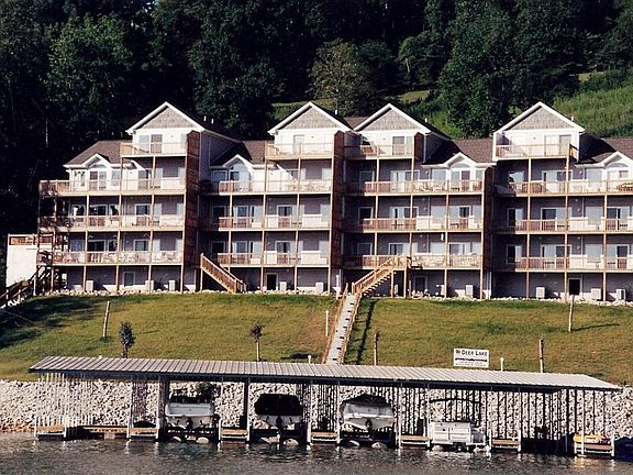 Living the Lake Life! This meticulous 2200 sq ft Lake Front Penthouse Condo is on two levels so you can enjoy your guests yet not compromise your privacy. Main level has 1 master suite, 2nd bedroom and bath, great room with kitchen, dining, living room with fireplace, cathedral ceilings and laundry. 2nd level has 2nd master suite, 4th bedroom and bath. Decks are on both levels. Each unit comes with a covered dock you rent. There is a community swimming pool beside the building that is for the lake front condos only. Steps lead to the covered docks
