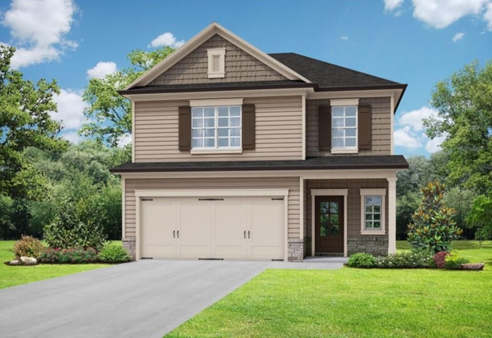 The Mayfield II Plan built by My Home Communities. The community is located 10 minutes from Atlanta Motor Speedway. This two story plan will feature large kitchen island in kitchen with a view to large family room, eat in kitchen/dining area stainless steel appliances, granite countertops, and 36" shaker cabinets with crown trim.. The home will also feature large master with crown molding, garden tub with surround tile and separate shower in the master bath.