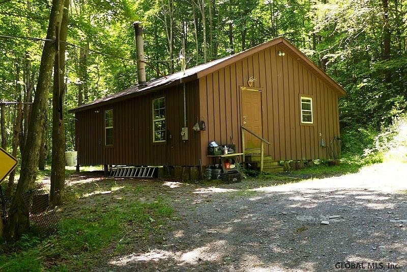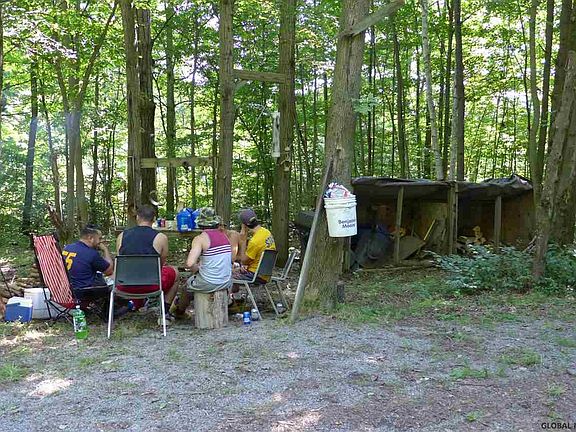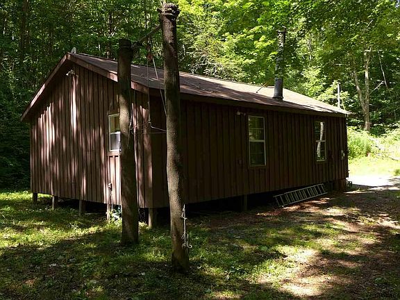 This very secluded property has been used for hunting, with great success. Most of the 2 room cabin serves as kitchen, living room and bunk room, sleeping 6. The other room is a full bathroom. It has electricity, a drilled well and a septic system, plus a fireplace and a wood stove for heat. The driveway is at the seasonal end of a gravel Town Road. There are several ATV trails through the woods, leading to tree stands. Large State Forest within walking distance. A must-see property for serious hunters. Very Good Condition