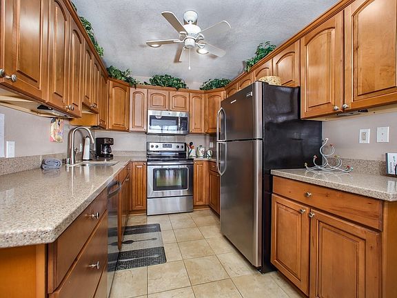 Beautifully decorated and appointed move in ready ground floor 2 bedroom 2 bath unit. Upgraded tiled floors throughout and beautiful kitchen with updated wood cabinetry. Each bedroom has a king bed and the living room couch pulls out into another bed to accommodate 6 sleeping. This was a private family 2nd home and partial vacation rental ready for a new family to enjoy. Borders the golf course so you have nice views. Close to Keauhou Bay for all your favorite water sports. Turnkey ready to move in. The E building is at the end of the complex so it's very quiet and serene. This unit is situated and set back so you aren't looking at anyone else while you are outside on your lanai for ultimate privacy. You can also have a pet with board approval.Must see.