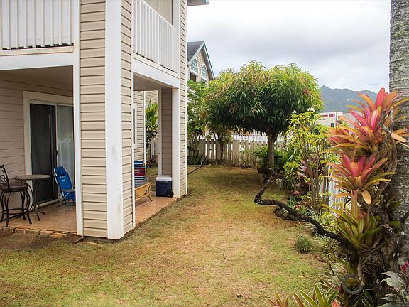 Spacious end ground floor unit with very large back yard. Tropical plants, beautiful mango tree, and still more room to have your own vegetable garden. Amazing mountain views from your lanai and bedroom windows. Come see for yourself the value this unit holds, it will not last long.