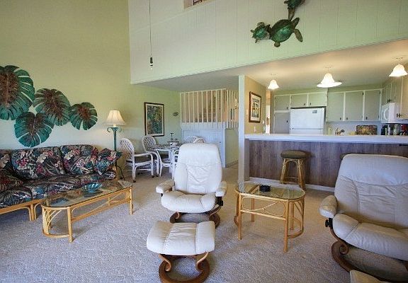 Spacious top floor three bedroom, three bath condominium in Waikoloa Village with golf course and ocean views. Enjoy the tropical island breezes from the two lanais, while taking in the panoramic views. This is the largest floor plan in the complex. Fully furnished turn key, just bring your toothbrush! End unit for extra privacy. Spacious fully equipped kitchen. Private lanai off master bedroom. Beautifully maintained grounds and landscaping. Swimming pool and barbecue area just steps away from the unit. Discounted green fees for Waikoloa Village golf course. Only 10-15 minutes from nearby beaches including A-Bay, Wailea, and Hapuna. Successful vacation rental.