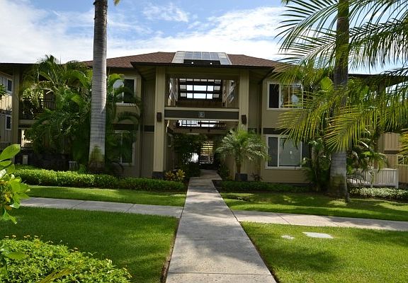 Fresh on the market and freshly updated second floor unit. Nice big lanai, some ocean view, Hualalai Mountain views.. Entrance and green walk way through the complex is framed by massive Royal Palm trees for shady afternoon and the feel of a tropical resort. Upgraded 2 bedroom 2 bath second floor condo. Built by on of Kailua Kona's premier builders this is a very desirable small condominium complex Polynesian styled recreational area with pool, spa, large BBQ for neighbors to gather for Aloha Friday Social time. Caring on site manager and higher number of owner occupants make this a wonderful place to call your primary or second home. Features include: Travertine slab counter tops in Master and Guest bath Shaving height cabinets Louvered shutter windows for privacy Stainless Steel appliances in kitchen Soft on the toes floor in kitchen and entry as approved by association Low profile buildings with only 2 floors, nice lanai entry for home. Hardwood boxed cabinets by DeWiles with self closing hardware on drawers. Topped with pendant lights accenting full slab granite counter tops. Kitchen has pull out drawers in deep cabinets Full size washer and dryer Central Air Cooling System for each unit Spacious bedrooms Private Single Car garage and deeded additional parking space for this unit. Great Location with wonderful neighbors! What more could you ask for in a well cared small condo complex just a short distance from beaches, shopping, restaurants, outrigger canoe paddling, stand up paddling, snorkeling, diving, surfing and more!