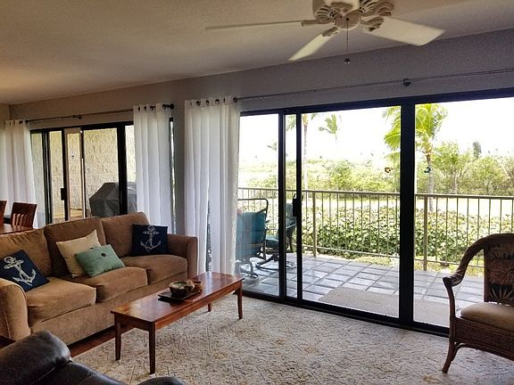 Wonderfully updated condo located in the highly desirable Keauhou Punahele Condo complex. Enjoy the close proximity to Keauhou Shopping Center, dining, beaches, and the greater Kona area. A quick drive south on the bypass road connects you to Captain Cook with ease. This is a bridge unit, NO STAIRS! Unit comes with a deeded parking stall #96 HOA dues include trash, water, sewer, basic cable, exterior insurance, and common areas. Pet under 40 lbs allowed with Board approval. Bring your suitcase and move in! Beautiful golf course view from the lanai. Most furnishings are included with sale. Bedroom furnishings, two electric recliners in the living room, hide a bed couch, beautiful mango wood dining set and swivel stools & portable AC, just to name a few. New granite vanities in both bathrooms, new appliances, new cabinets and quartz countertop in kitchen, new flooring. Make this your Hawaiian get away! Agents and buyers to independently verify all pertinent information regarding purchase or offer and perform their due diligence as information is considered reliable, but constitutes no warranty or guarantee of any kind.