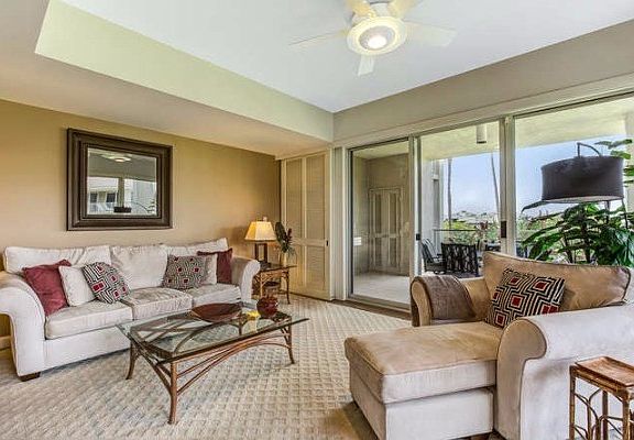 One of the only properties in this price range at the resorts to have an ocean and mountain view. This beautifully furnished 2b/2b unit in Vistas at Waikoloa is in an ideal location in the complex away from the street. This unit has a large kitchen and living area that opens to a large wrap around glass lanai where you can sit and relax while looking out to the amazing Pacific ocean. This 2nd floor unit in a concrete building is easily accessed by elevator. Vistas at Waikoloa has a heated salt water pool, 2 spas, a fitness center, BBQ area, pristine grounds with lush greenbelts and on site business center. Located in the Waikoloa Beach Resort this unit has access to golf, restaurants, shopping, sandy beaches and snorkeling all within minutes. Great weather year round at this ideal spot along the Kohala Coast make it a great vacation destination or an ideal home in Paradise. This unit is being sold turnkey furnished and has been a vacation rental. In 2014 the owners grossed approximately $33,000, In 2015 gross was approximately $41,558.