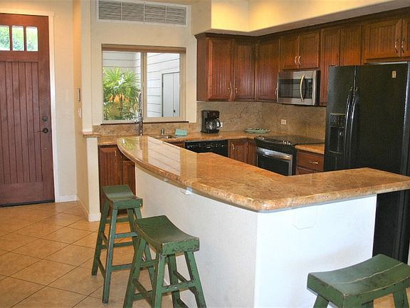 Palm Villas at Mauna Lani E-2 is a fully furnished turn-key unit available for immediate occupancy. E-2 is a ground floor unit featuring 3 bedrooms, 2 full baths and a single car garage. This community has only 44 units and is located in the center of the Mauna Lani Resort directly across from the fitness center and spa. Enjoy nearby walking trails to the beach and a short stroll to The Shops. This unit is not in the short term vacation rental pool. Pet allowance is 1 spayed or neutered indoor cat E-2 Features include: tile floors in great-room and baths carpet in bedrooms ceiling fans in every room large kitchen with designer cabinetry and granite counters dual sinks in master bath with separate shower and soaking tub covered lanai with built-in BBQ, sink and granite counters central A/C fully furnished including linens and dishes community pool and exercise facility gated community Maintenance fee include water, trash collection, building insurance, landscaping, pool and work out room. The information herein may contain inaccuracies and is provided without warranty or guaranty of any kind. Agents and Buyers must independently verify any info they deem material or important to their purchase or any offered price there under. Square footage should be confirmed by an appraisal report.