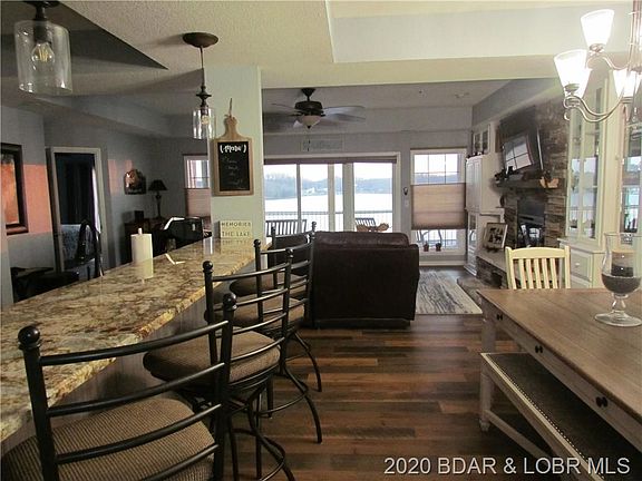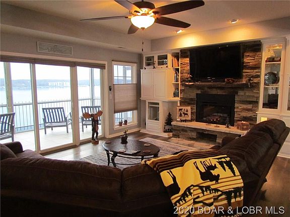 Spectacular Views from Gorgeous 3 Bd, 3 Bath Waterfront Condo. This perfect package comes mostly furnished & includes a Garage that's within a few steps, 12x32 Boat Slip with 6K Lb. remote lift, Dual PWC Lifts. New HVAC and Lg. Screened and Tiled Deck for carefree living. New tile flooring throughout and updated stainless appliances, granite counters-tops, custom cabinets and tiled back-splash. Lakefront Master suite with newly remodeled spa-like bath, w/Fireplace, has Lg. walk-in shower, 6' heated jet-tub, extended custom cabinets & fixtures & walk-in closet. Jr. Master-suite also beautifully updated with tiled shower, extended cabinets and fixtures. New fireplace in living rm. w/ lighted built-ins and large entertaining areas. Harbour Towne Complex has Tons of Amenities w/ 2 Heated Swimming Pools, Clubhouse, Dog Walking Trail, Tennis Courts, Trailer Parking, Concrete Wave Break & Playground all in a Park Like Setting. 1 MM near Bagnell Dam and Hwy 54 offers convenience everywhere.