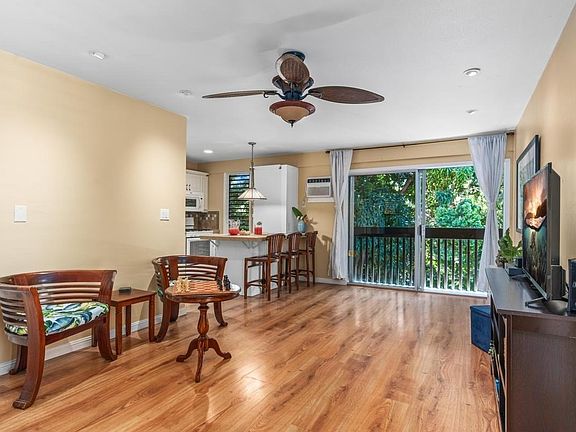 The unit comes with one designated parking space; complex amenities include a nearby pool and barbecue stations. The monthly AOAO fee covers water, trash, basic cable, solar hot water, gas, building insurance, common area maintenance and reserve.