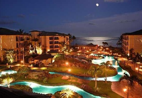 PENTHOUSE - One of only a handful at Waipouli, this Beautiful ONE BEDROOM - TWO BATH Penthouse Unit is on the Top Floor at the Luxurious Waipouli Beach Resort. E404 Features a fabulous view of the OCEAN from the TOP FLOOR, looking down on the heated, saltwater fantasy pool and courtyard. High end appliances such as Sub Zero refrigerator, Wolf cooktop are the standard in this Penthouse Unit. Finished with Peruvian Travertine tile, trim and counter slabs, solid granite slab countertops, yellow onyx and Merbau crown and base moulding, this Penthouse Unit has vaulted ceilings that add to it's spaciousness. Lazy River Pool complete with Water Slides, Waterfalls, and 3 Sand Bottom Hot Tubs Sandy Beach Pool for kids Spa and Massage Service by "Spa by the Sea" New Fitness Center near pool area Oasis Oceanfront Bar & Grill Gorgeous Landscaping throughout property Waipouli Beach Resort is situated on Kauai's east shore and is centrally located within walking distance from beaches, shopping, and restaurants. Enjoy dinner or a drink and pupus at the esteemed oceanfront restaurant in the complex, 'Oasis on the Beach'. This unit is being sold completely "turn key", including all furnishings, dishes, linens, and kitchenware and is the ideal vacation rental, second home, or move-in-ready primary residence complete with central air conditioning.
