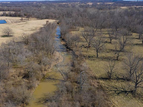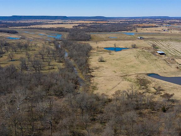 Turnkey Farm & Ranch Opportunity. Excellent perimeter barbed wire fence. 9 big & small traps cross fenced, some W Woven wire over barbed wire. Mobile home site with water, electric, and septic. 50x80 red steel hay barn with wall. Pipe cattle working pens. 3 stocked ponds. North pond has frost free waterer. South pond has controlled livestock access. South Dirty Creek bisects the property. Water and wildlife year round!