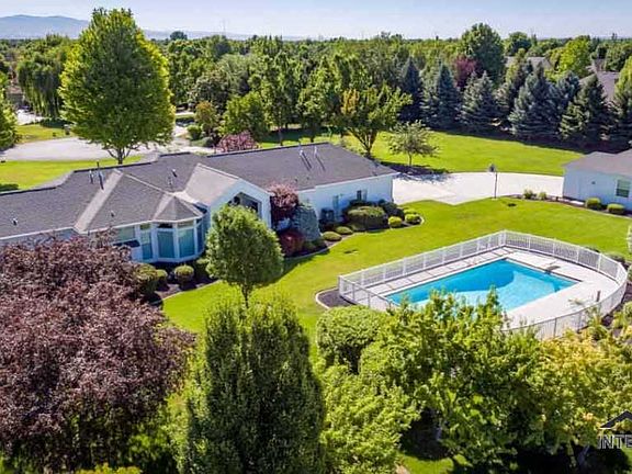 Welcome to this gorgeous 2 acre private estate! Nestled at the end of a cul-de-sac with beautiful mature trees, this stunning home was built to impress. The elegant foyer w/10 ft vaulted ceilings opens to sunken living room & formal dining. Kitchen features breakfast bar, double ovens, stainless steel appliances and opens to family room w/fireplace. Private master suite w/walk-in shower & soaker tub. Adjacent office opens to back patio. The professionally landscaped yard boasts a pool and large shop.