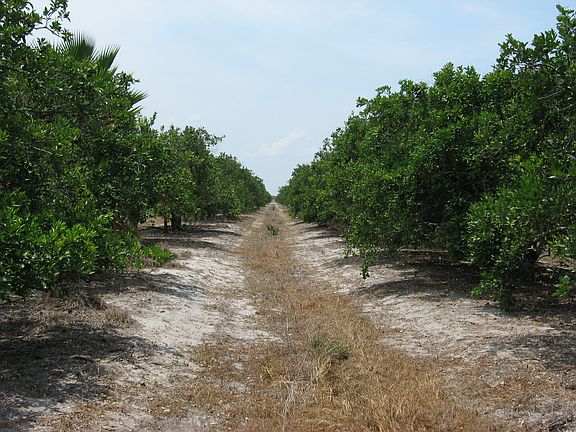 Agricultural Orange Grove producing income. Fully irrigated w/electric, RV set up on-site. Private community, low taxes, well maintained. Can be expanded!