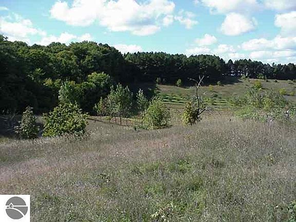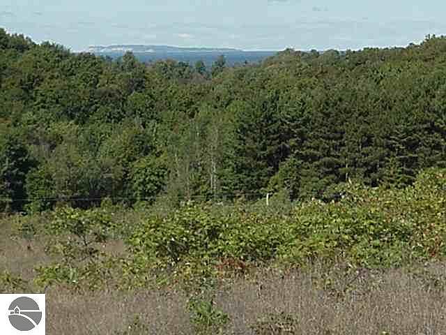 View of South Fox Island from this lovely homesite situated between Leland, Northport, Omena and Suttons Bay. High ground with an elevation at approximately 960ft above sea level. Open meadow well suited for cherries, vines,fruit, heirlooms and or organic crops. Easy access off the county road. Path mowed to the view site. Corn field to the west provides development buffer in perpetuity. Adjoining 10 acres also available, MLS 1691958. Click on green "D" above for survey.
