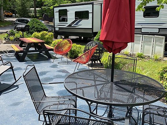 31 foot Forest River V-Cross on a beautiful lot next to pool and clubhouse at Outdoor Resorts of Gatlinburg.