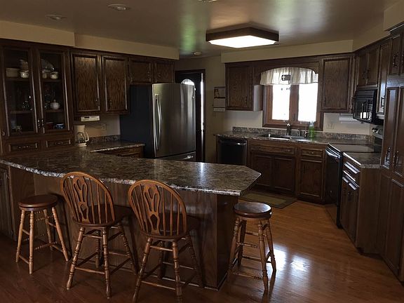 Sprawling country home with beautiful views and updates.Too many nice qualities to list!! 3 Large Outbuildings allow for rent income. Immaculately cared for home and property.Large living room features a cathedral ceiling, skylights, a wood burning fireplace, and french patio doors. Kitchen has been remodeled and updated to include an island snack area. Dining area features a wood burning fireplace. Master bedroom on upper level allows entry into the full bath. Lower level has a large family room with daylight windows. Seller would sell the house separate from the outbuildings at lower price.