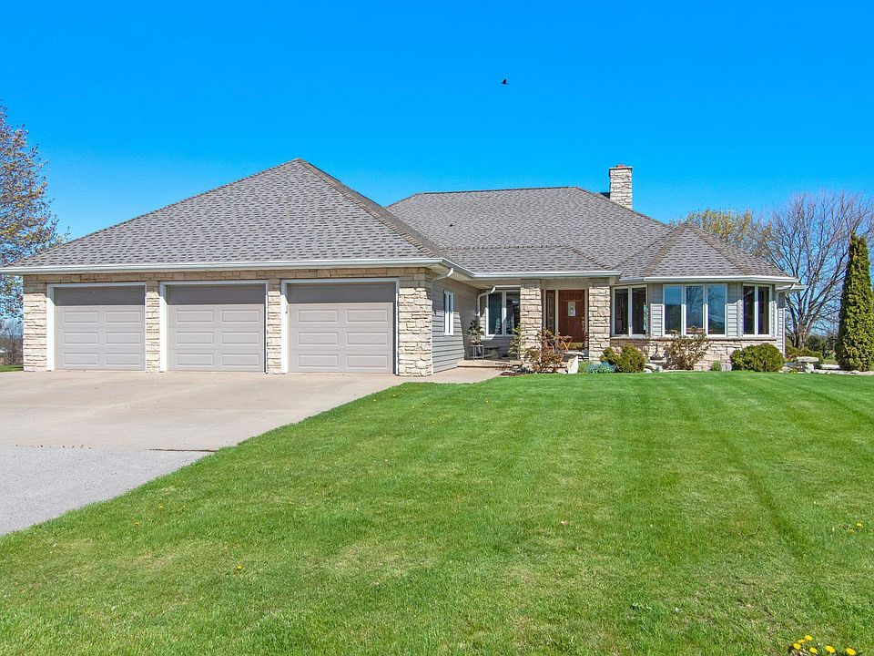 Here nestled on a sprawling 9.18 acres of picturesque land, is this meticulously maintained custom built ranch where you’ll step into 2790 sqft of pure country sophistication, where every detail has been carefully crafted for quality living. The gourmet kitchen boasts SS applncs, ensuring every prepared meal is a delight. Sitting on the charming brick paver patio allows you to take in the breathtaking views of your expansive estate. Unwind in the primary suite, complete with a soothing whirlpool tub, wk-in closet, dual vanity & tray clg. Convenience is key with a 1st-flr lndry & 3-car garage. Last but not least is the outstanding 3-stall horse barn ready to accommodate your 4-legged companions in style. Check out the list of updates too! 48hrs binding acceptance. Showings begin 5/9 @10am.