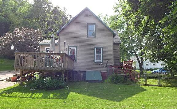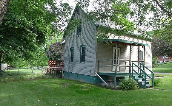 Affordable home with secluded backyard bordering the Eau Galle River - great trout fishing! Spacious 4BR/2BA offers a main floor bedroom and three on the upper level. Kitchen provides plenty of cabinetry, laminate wood flooring and includes the range and refrigerator. Nicely sized dining room also has the same flooring for a nice flow. Carpeted living room features a big picture window and includes the Pellet stove. Find a full bath on the main floor and a 3/4 bath in the lower level. Relax on the back deck overlooking the fenced in yard and River! Great lot also has a firepit area and fenced in dog area. Home is updated with new Pex plumbing, new 100 AMP panel, newer windows, vinyl siding and natural gas forced air furnace. Oversized 2 car detached garage. Village owns strip of land that borders River and property; current Seller maintains/mows/uses this strip. In Spring Valley: Hwy 29 to South on Stockman St, 1st home on left.