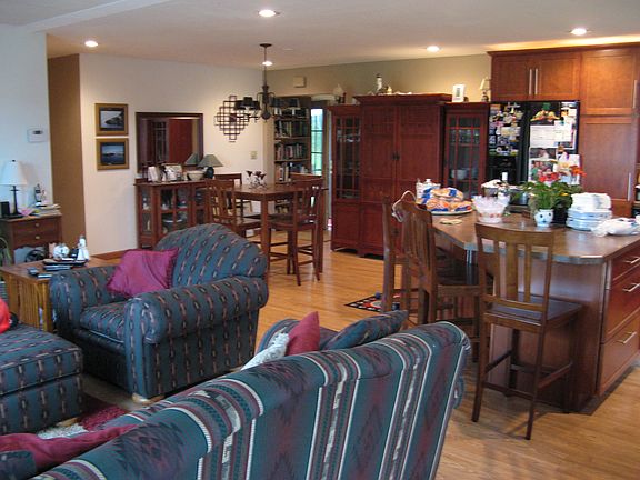 Walk out ranch, with attached one-car garage with storage. Two bedrooms up (including master with large closet/dressing room and french door to back deck and hot tub), large entry and living room, new kitchen and appliances/great room, full bath. Beautiful new windows throughout, with custom cabinetry and woodwork. Fully finished basement with bar room, french doors leading to large living/media room, bathroom with shower, ceramic tiled entry/bath/laundry, bedroom with multiple closets. Natural gas furnace and pellet stove to supplement heat; new tankless natural gas water heater, new well, submersible pump, water tank and water softener; new 200 amp electrical in home and 100 amp in shed. Wood floors throughout (natural wood and laminate), and carpeted living room. New roof in 2008; most work done since 2009. Side-by-side counter depth Whirlpool refrigerator and gas drop in range, dishwasher. Large unique kitchen island with seating for 4+. Both bathrooms completely remodeled. 50'x80' shed has poured cement floor throughout, storage loft, 25x30 insulated multi-purpose room with casement windows, entry door, large storage cabinets, good lighting, heat vents and ceiling fans; also well-lit 25x28' two+ car garage/workshop with cabinets, shelves, furnace and insulated and windowed garage doors. This shed is a great asset for a business, storage, or even for renting out for parties or storage! Seamless steel siding, two unique decks with a boardwalk entry, mature trees, and more than hostas in the landscape. French doors off the entry lead to a rear deck with a large spa; the master suite opens onto this deck, as well.
