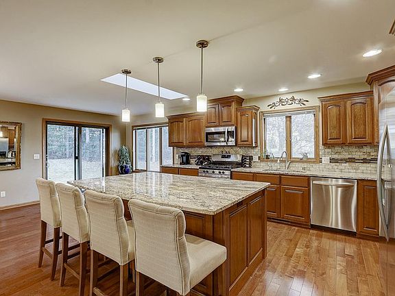 4 bedroom 3 bathroom home located in Baraboo's premier subdivision Wynsong Estates. Custom cherry cabinets, stainless steel appliances and granite counters, 7' island, and tiled backsplash. Vaulted great room with gas fireplace, hardwood floors. Master suite complete with jetted tub, double vanity and walk in closets. Lower level has updated with newer flooring, wet bar, full bathroom and office. All of this on an incredible lot. UHP home warranty included