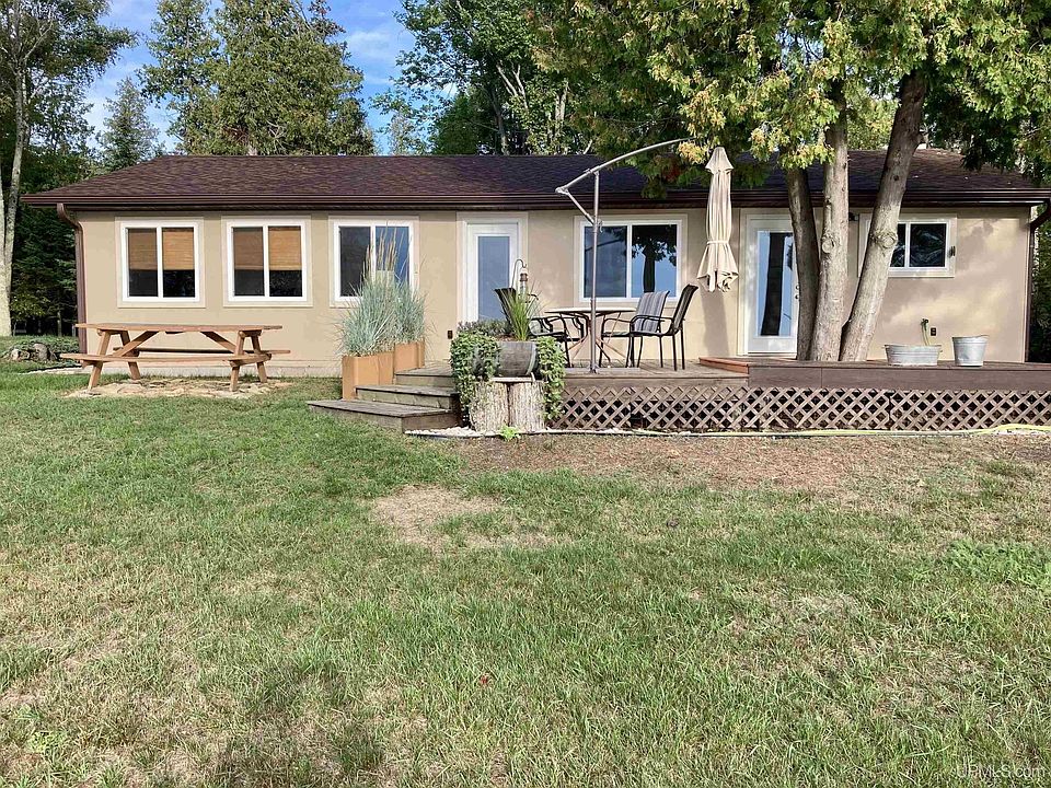 Here it is, just move in and start enjoying life on the lake. This home is furnished and ready for the summer. Front of the home is completely open for enjoying the view out the windows, and a deck to catch the rays. This home has been remodeled and added onto for additional space. There is a primary suite with walk-in closet, and bath that includes a heated towel rack. The second bedroom is set up for family and guest, queen size bed and bunks for the kids to sleep in. The second bath is a full bath for guest & family. Family and friends will have a great time on the beach for swimming, kayaking, standing boards, rafts, and don't forget ice fishing in the winter. There are 2 sheds on the property, a 2 car garage for all your storage needs. Cedar River has a boat launch, and a pub if you want to eat out. This home is off the highway and a private location, just a few other homeowners near by. Don't wait to see this home, this will sell fast! Call today to schedule your personal showing.