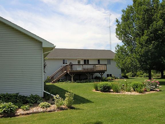 This is a six acre parcel in a beautiful country setting between Baraboo and Wisconsin Dells. Spacious raised ranch home, set 200 yards off the road, with an covered entry deck, a 15'x17' paver stone patio and two 16'X20' decks. Also has a 3 car 26'x40' garage with a new roof and 2 garden sheds. The main level has 3 bedrooms, 2 bathrooms and LOTS of storage and closets. The basement has a full bathroom and partially finished Rec Room, as well as a "canning kitchen". This property is set up as a homestead or could be used for extra income as a Farmer's Market. The yard is planted with assorted fruit trees, grape vines, asparagus beds, strawberries, raspberries, and blueberries. A large variety of fancy daylilies, Iris and hosta plants can also be sold for extra income. Almost 3 acres of mowed lawn and gardens, as well as 3 acres under till.