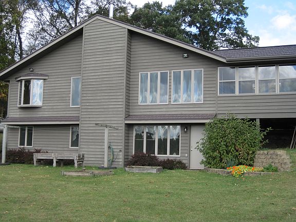 Baraboo/Dells area. Single family home custom built in 1991. Beautiful 5 acre country setting bordered by fields, woods and prairie. Well-maintained. Energy efficient. Main floor: 1176 sq. feet. Bedroom, study/bedroom, full bath, kitchen, dining room, living room. Vaulted ceiling, Hearthstone wood stove, stained glass window. Lower level walk out. Finished area approx. 800 sq. ft. Family room, two bedrooms, and full bath. Lower level also has unfinished workshop and laundry/utility room. Exterior: cedar siding, aluminum 40-year roof, aluminum eaves troughs, Gutter Glove gutter guards. Apple trees, grapes, raspberries, rhubarb, herb bed. Two car attached garage. Three season porch. LP heat. Electric water heater. 2013 heating expense: $588. 2013 property taxes: $3400. Fair market value appraisal: 225K. Will sell for 215K, firm.