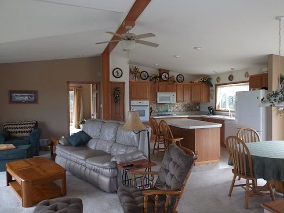 Serene country setting with 2.4 acres, lovely home with 3 decks. This open concept living is sure to capture your love of nature on a daily basis. This 8 year new home features vaulted ceilings, large main floor laundry, windows galore, large master suite with private bathroom and an oversized 3 car garage 36x30. In floor heat in lower level with walk out and radiant heat on main floor. Home shows like new!