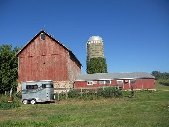 Country living and yet close to town. The ideal setting 20+ beautiful acres in the Baraboo Bluffs. Includes a six stall horse barn with attached additional barn, machine shed, plus a separate garage apartment that features living room, kitchen, bedroom, bath and separate utilities. House has been remodeled over the years and features 3 bedrooms, 2 1/2 baths, two living rooms and large kitchen area. Land is a combination of woods, pasture withlots of wildlife.