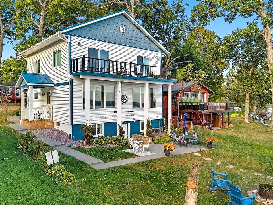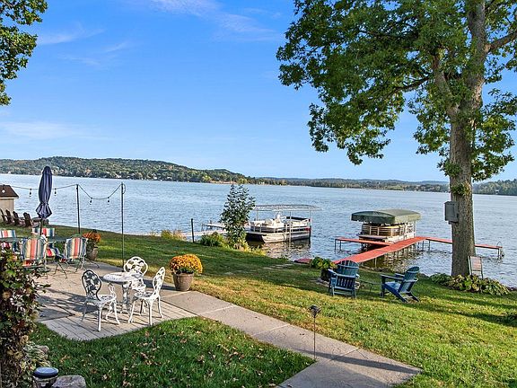 Spectacular 3 bed/3 bath Lake Wisconsin home with 54 ft +/- of sandy bottom frontage! This incredible home is nestled on a level lake lot with southern exposure and beautiful, panoramic lake views! Many updates! Features include an open floor plan, updated kitchen, spacious living room with wood floors & large windows, and two lakeside bedrooms with walkout balcony/deck to enjoy the sunrise views! The exposed lower level features a large rec room, 2nd kitchen (you can use it as an additional 4th bedroom or guest suite), and a walk-out to the patio, pier, and lake! Bonus second lot with an enormous 2+ car garage for all your toys! When not on the water enjoy lots of great recreation nearby: Golf, Devil's Lake, Great Sauk Trail, Wisconsin Dells, and 2 nearby Downhill Ski Resorts!
