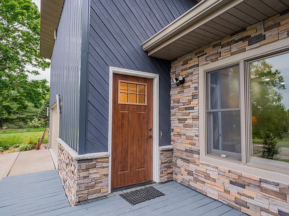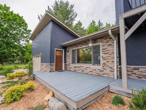 Don’t miss this one-of-a-kind 3 bed, 3 bath home on 3.23 acres just minutes from Fall Creek, tucked away on a quiet dead-end road. This unique property offers peace, privacy, and abundant wildlife, with raspberry bushes, apple trees, and asparagus already growing. Relax or entertain on the large tiered deck, complete with reinforced space for a hot tub. The private master suite features its own balcony, while the main floor includes 1st floor laundry and a spacious lower level family room with a stunning stone fireplace. Interior/exterior dog kennel is an added bonus. Updates include: new furnace (2021), garage door (2024), roof (2025), remodeled kitchen and baths, and new flooring. Attached 2-car garage plus an impressive 30x50 pole shed with wood stove. Excellent location and a must-see!