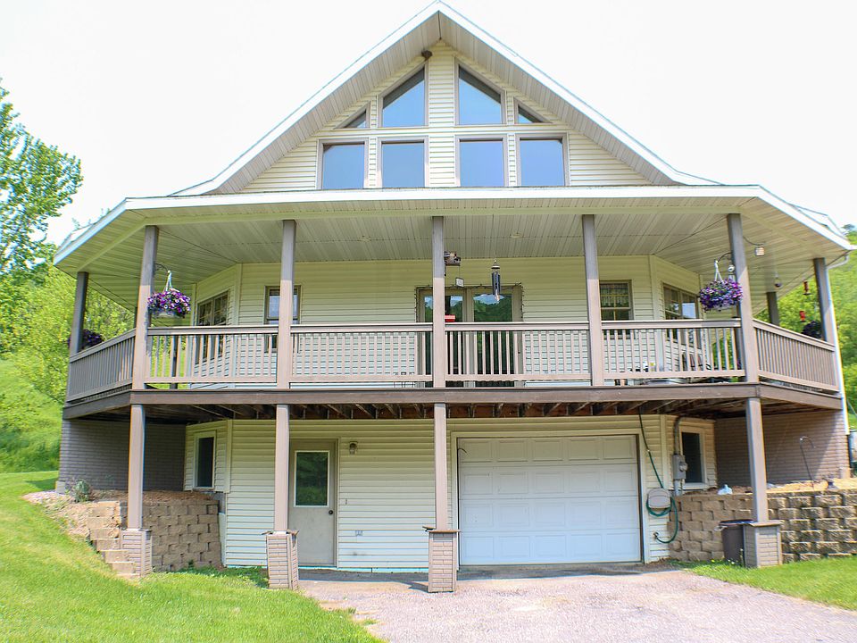 Gorgeous custom built home on 22+/- acres of land to be surveyed. Located adjacent to Wildcat Mountain State Park horse campground with access to many beautiful trails. Quiet valley setting in the Driftless region. Home is a 2 bdrm, 1.5 bath with stunning woodwork throughout. Many species of hardwoods were used for the floors, trim, doors and cabinets. 1-car tuck under garage and additional 26'x42' insulated shop. Outdoor wood boiler for heat and wood storage shed is included. Enjoy the view of the spring-fed pond from the wrap-around porch. Land is roughly half tillable and half woods. Perfect hunting retreat with a 12'x16' cabin with rustic hickory floors placed up on the hillside behind the house. This property is also available with 4+/- acres for $349,000.
