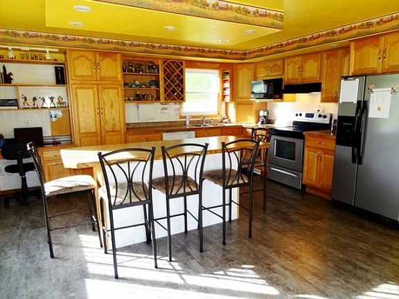 10 acres partially wooded & tillable acreage + corral/pasture area. Remodeled kitchen w/new cabinets & flooring, stainless steel appliances & center island. New woodwork & 6 panel doors throughout. Bathrooms updated w/new flooring, solid surface countertops & fixtures. Other updates include siding, roof, paint & geothermal unit. New 3 stall detached garage & 30x40 outbuilding w/water & electric.