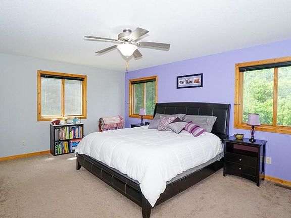 Country Living doesn't get better than this! Gorgeous custom 4 bed/3 bath home on 20 wooded acres. Home features hickory cabinetry, maple flooring, 35x54 pole shed w/ concrete flooring & box stall in back of shed. Enjoy drinking your morning coffee on the wrap around porch with breathtaking views. Great room on main level is open concept with a wood stove to enjoy all winter long. Main floor also has large bedroom and full bathroom. Entire loft area is a master suite with bath & walk-in closet. Lower level is recently finished w/ sound proof walls & ceilings. Additional 2 bedrooms, full bathroom, & family room with walkout to new deck. Log hunting cabin on property with trails to enjoy.