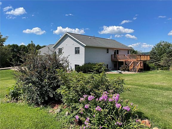 The quintessential WI country property...beautiful views of rolling hills, farmland and whitetail woods. Convenient location only 20 min to Eau Claire! One owner, well maintained 5 Bed, 3 Bath spacious home nestled on 39.74 acres. Currently used as a hobby farm with fencing for cattle & goats / sheep, with approximately 26 tillable, 10.5 wooded for hunting, 3.5 for yard. Mature landscaping including multiple apple trees. The home features an open concept main living area, master suite with attached bath and 2 closets, spacious family room with sink and fireplace, multiple decks to enjoy your outdoor space, attached 2 car garage with direct access into a lower level utility room. Multiple outbuildings including a 30x45 pole shed that has a concrete floor, electric and water. Pre-Inspections have been done for you! Seller may consider selling home with less acreage. So many options, this one is worth a closer look!