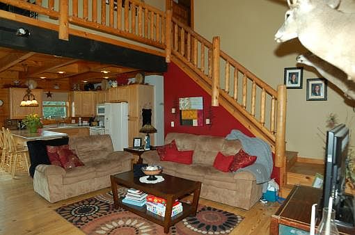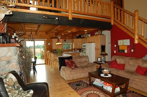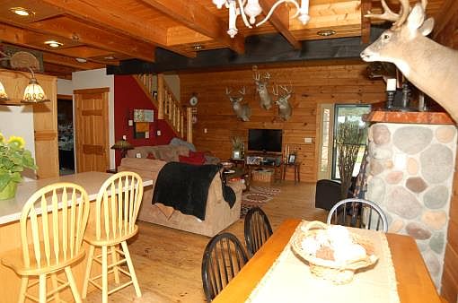 E1786 Tresness Rd, Iola WIThis Craftsman built log home is the ultimate private retreat. Set back from the road and surrounded by woods this property sits on 15 acres. The home is heated with exterior wood burner and forced air. The great room on the main level has large windows for light and views that never stop, as well as plenty of space to relax with a loft overlooking from the upper level. The home has 3 bedrooms and 3 full bathrooms. There is an additional finished family room in basement with an entertaining area. To complete this package, there is a large pole shed, steel roof on home and shed, and a large deck off the dining area and kitchen. Call Lori to check out this beautiful Log Home today!
