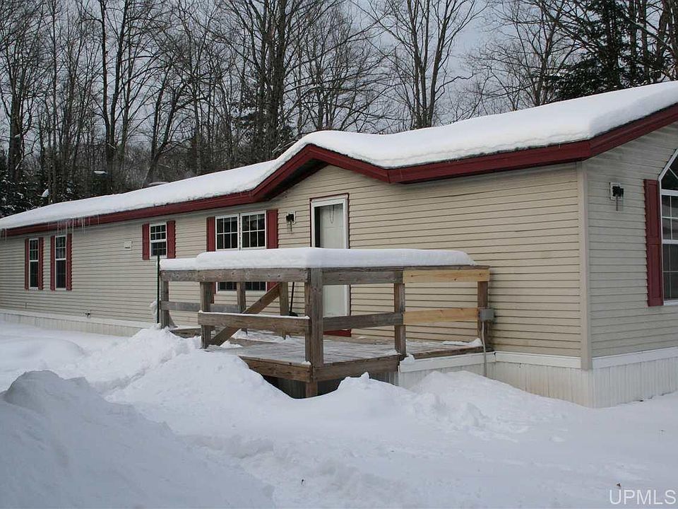 VERY WELL KEPT 2BR, 2BA manufactured home. This bright and inviting space has a natural flow and wide open living and kitchen area. Large master bedroom includes a walk-in closet and bath. Laundry area is connected to the back entrance, making cleanup easy after a day outside. New roof with decking in fall of 2020. Keyless entry and smart thermostat make leaving home for vacation or long-weekends a breeze. Spacious 24x30 post-frame garage built in 2020, comes fully wired with 120 and 240 VAC and plenty of extra breakers in the panel. Generous eave and ridge lights allow enough natural light to work during the day and LED shop lights keep your electricity costs to a minimum at night. The 16 ft garage door, poured concrete slab, and large floor drain make this ideal for storing vehicles and toys all winter long. Garage also includes 3 overbuilt work benches, a miter saw section, and smart layout to accommodate professional-grade workmanship. Ample shelving keeps your storage and workspace organized. A dual-fuel Westinghouse generator is stored securely in a shack designed for easy access in heavy snow. It has a push-button start, direct line to the 500 gal propane tank, and plugs directly into the garage for fast, easy, and reliable power recovery to your home and shop. The adjacent 8x12 garden shed is perfect for organizing seasonal tools and supplies, and with over 300 sq ft of raised bed garden space, you'll have plenty of room to cultivate the garden of your dreams. Enjoy down time in your secluded and spacious back yard with beautiful wooded views and stone fire ring. The county access road is high priority, paved, and in excellent condition, which means power is usually restored quickly if lost, and county plows are quick to remove snow in the winter. The short driveway means you can enjoy all seasons with very little maintenance. Great home base for snowmobiling, ATV, hunting or your year round home.