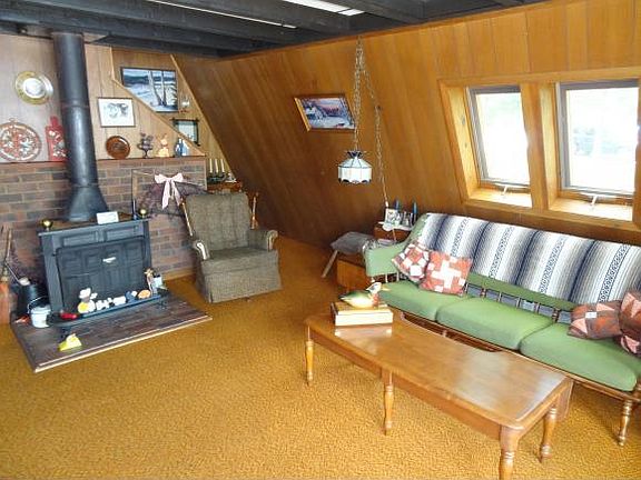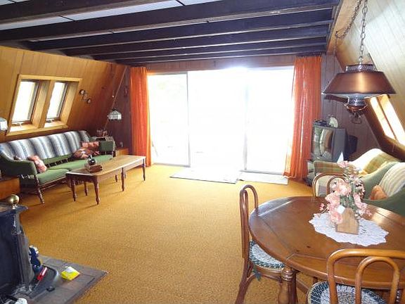 Sanctuary From The City! This 3 bedroom, 1 bath home with 90 ft of Iola Lake Frontage could be your escape to seclusion! Home has an open concept kitchen/dining/living room layout. Large living room with lake views through the floor to wall patio door. Upper level is split into two bedrooms, one with a quaint balcony. Large deck facing the water and view of your beautiful backyard. 1.5 det garage!