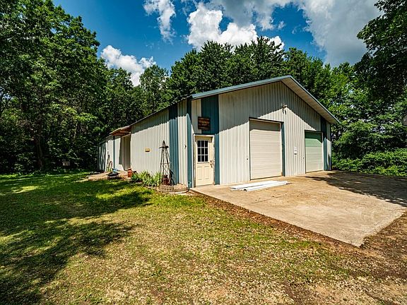 Private oasis nestled on 2.68 wooded acres. Home features main floor greatroom w/stone fireplace, formal and eat-in dining area, kitchen w/island, 2 three season rooms, MST bedroom/bath, 2 additional bedrooms and bath. Lower level walkout from a partially finished basement (rooms ready for your finishing touches), family room w/bar, media room, office area, 4th bedroom(no egress) and bath. Attached 36x26 garage and additional storage shed and 99x40 poleshed(partly heated). Endless possibilites to make this home yours!