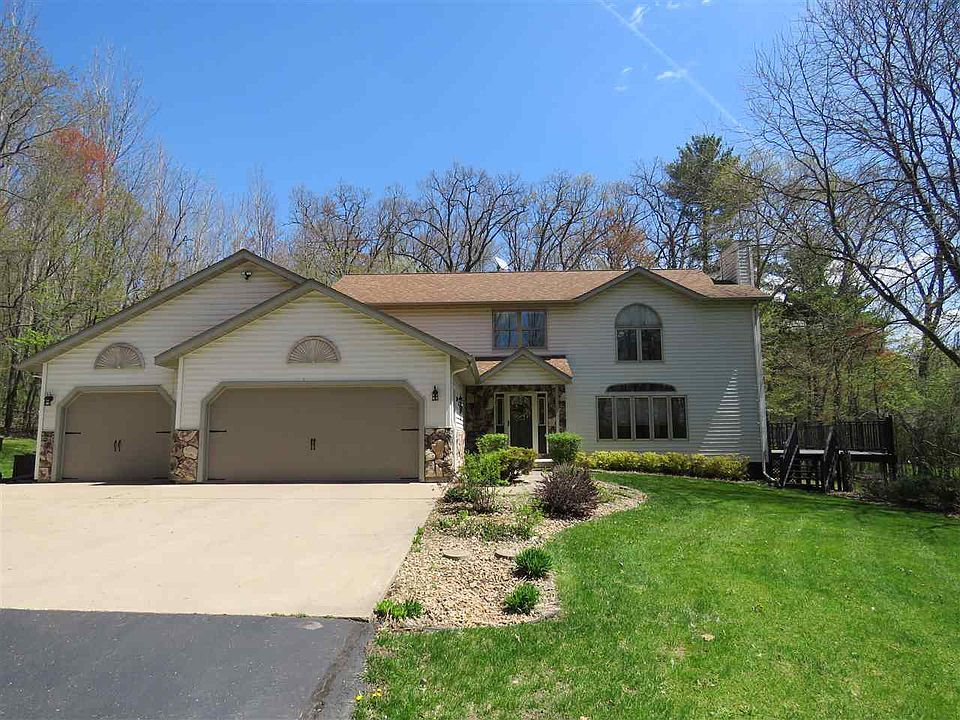 Looking for space? This 4 bedroom, 2.5 bath home has lots of room to grow. You will love the large living room which opens to the dining room and kitchen. The dining room offers patio doors out to the back yard and the kitchen has tons of storage and prep space. You will also love the formal dining room, den and main floor laundry! All 4 bedrooms are upstairs including a master bedroom with a walk in closet and giant master bath with a large corner tub and shower.Two other bedrooms have walk in closets and there is a second full bath upstairs. The lower level is unfinished but offers tons of potential with a walk out basement. The home sits on a gorgeous 1.6 acre lot, has a large deck and a great 3 car attached garage. Call today to set up your personal showing!