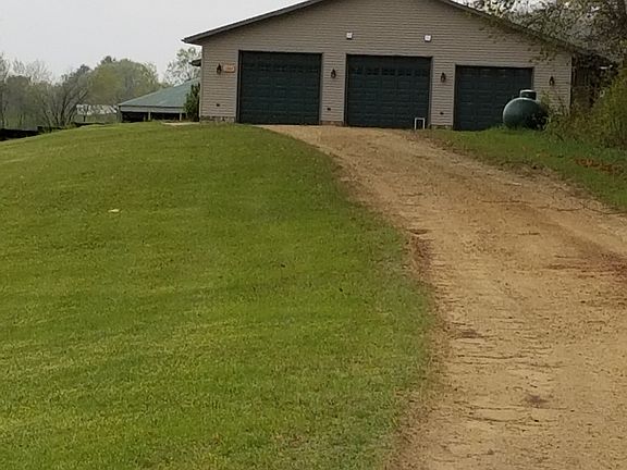This is a beautiful, well-built 2002 home resting on 15.02 acres on a quiet rural road. The house boasts an open floor plan with high vaulted ceilings in the kitchen and dining area, a very large open kitchen and recently updated stainless steel appliances. The spacious living room has beautiful laminate wood flooring, a gas fireplace, and plenty of room for all your furniture! It comes with a 65" 4k UHD smart flat screen television installed and ready to hook up to your television carrier choice. Enjoy beautiful sunsets from your covered porch or your master bedroom with on-suite bath. The master also includes a large walk in closet and the bath features a double sink vanity, tile flooring, and a walk-in shower. The large, attached three car garage gives you ample room for all your vehicles, lawn mowers, 4-wheeler, etc. The garage also includes a forced air natural gas heater that is thermostat controlled and drains in the floor to accommodate washing vehicles, even in the winter! The entire living space features in-floor radiant heat from a closed system boiler with three separate zones to cover the whole house. Forced-air furnace is also an option if you ever feel you need to take the chill off! Central air will help to keep you cool on those hot Wisconsin summer days. New Cleary barn/pole shed was built in 2012 and is ready to house your animals, spare cars, boat, or whatever else you may have. It is laid out in such a way as to allow for a spacious workshop in the front portion, if you should desire! This is a beautiful setting, just waiting for an active family to enjoy!!