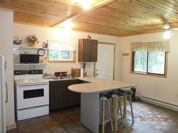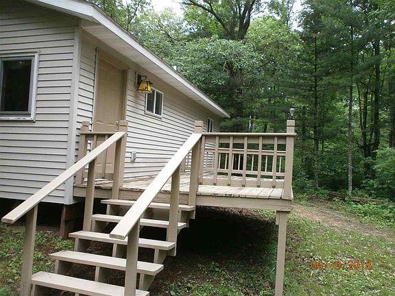 Cabin on 2 acres approximate ,with access to the Little Wolf River. 1 Bedroom ,bath ,large kitchen and dine area .2 Large decks on the front and back . 2 garden sheds for the extra's . Electric ,conventional septic and well are on the property . Hunt right at the cabin (turkey and deer ) ,or just enjoy a "get-a-way "upnorth cabin ! The price reflects ,room to change the well ,the present well has only 1+ gallon per minute .