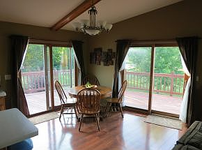 Move in ready ranch home located on a private five acre lot. Open concept living room/kitchen with vaulted ceilings, gas log fireplace, lots of windows and light. Full finished lower level walkout basement. 4th Bedroom, spacious family room, and great bar for entertaining. Extra large 2.5 car garage for all your storage needs. House is close to Iola without the high taxes. Must see home!
