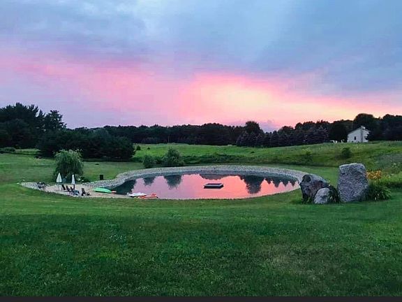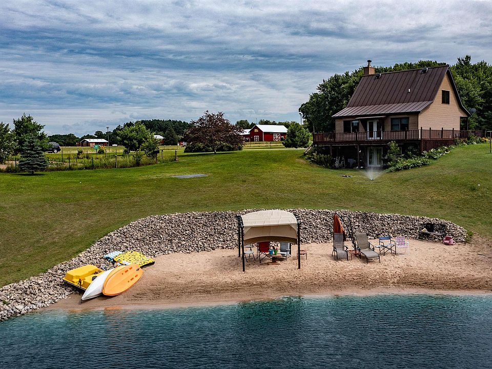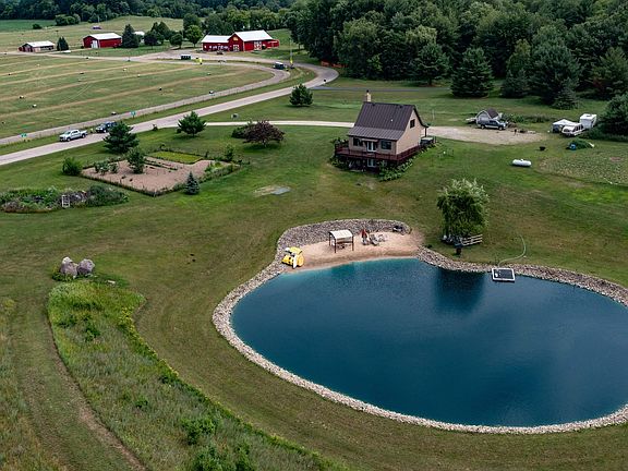 It's your personal 6 acre retreat! This 3 bedroom, 2 bath home offers a living room space on each level. You will love the country feel of this home as you sit on the covered front porch or the wraparound deck that overlooks the 140'X130' pond that is approximately 20' deep with a beautiful beach area with a pergola and dock. The walkout lower level has a bedroom, full bath, and a family room that leads out to the patio. Don't miss this one!
